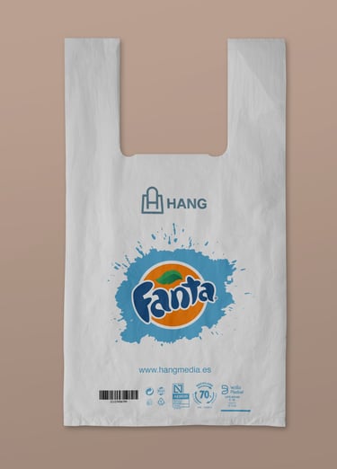 Incorporando la imagen de la marca, convertimos las bolsas de la compra en un espacio publicitario útil y cotidiano que se mueve con el consumidor de forma natural.